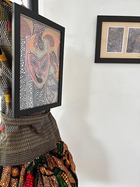 When doodling I experience myself as child-like again in the singularity of my focus and abandonment of the world. Each piece is a diary entry. I am speaking to myself about what is, what I need and how to stay free. I learn from my pen which is why I always encourage others by saying “Pick up your pens!” This is how we claim our power back; by penning our own narrative and teaching the world how to recite it. It is no wonder to me that as I make my unconscious visible on paper, as I allow the unspoken to find it’s voice through the pen, I find my culture, my origins, my people emerging and taking the frame. No, it is not intentional that the works resemble African wax print. It is intentional that they speak of me. This is how my authenticity chooses to speak.
